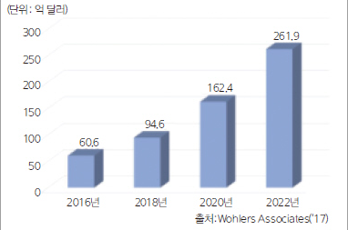 내년 2022년에는 262억 달러 규모에 이를 것이라고 예측 되는데요